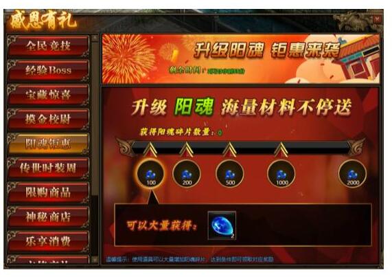 1. 活动期间,玩家获得阳魂碎片数量,达到条件可领取对应阳魂碎片奖励。