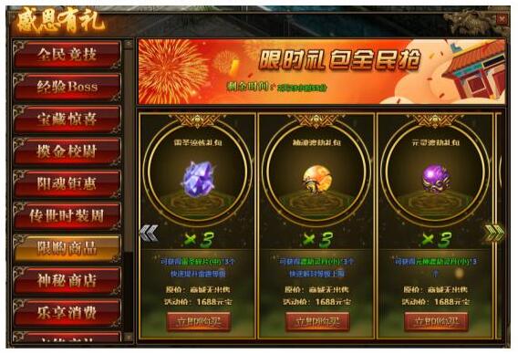 1.活动期间,玩家可在活动面板购买限购商品;(可翻页)