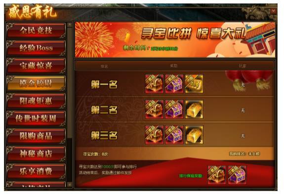 1.活动期间,玩家寻宝次数达到1000次即可参与到摸金校尉排行榜中