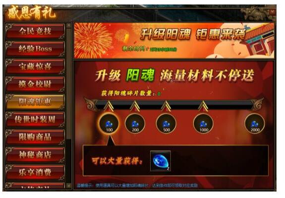 1. 活动期间,玩家获得阳魂碎片数量,达到条件可领取对应阳魂碎片奖励。