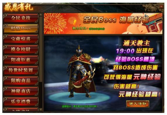 2.活动中,玩家对BOSS造成的伤害,将在活动结束后转换成元神经验并发放;