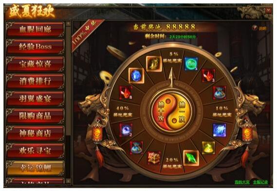 1.活动开启后奖池内默认存入88888元宝,每抽奖1次可使奖池内增加100元宝