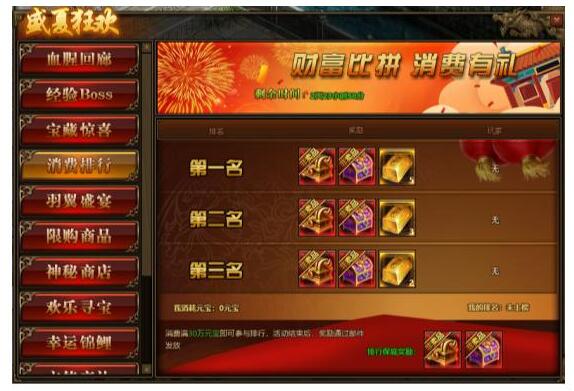 1.活动期间,玩家消费满30万元宝参与排行