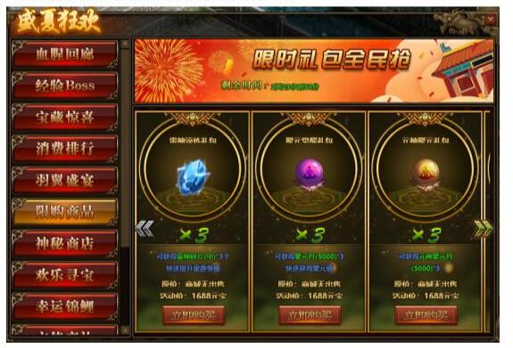 1.活动期间,玩家可在活动面板购买限购商品;(可翻页)