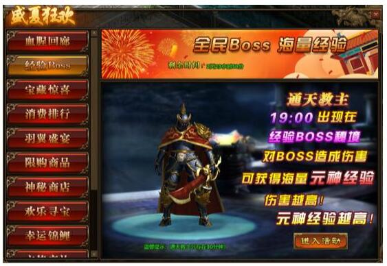 2.活动中,玩家对BOSS造成的伤害,将在活动结束后转换成元神经验并发放;