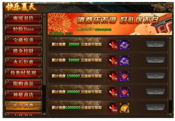 1.活动期间,玩家累计消费满足要求,可以领取境界修为、本职业星石、传世灵戒等相应奖励;