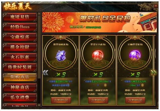 1.活动期间,玩家可在活动面板购买限购商品;(可翻页)