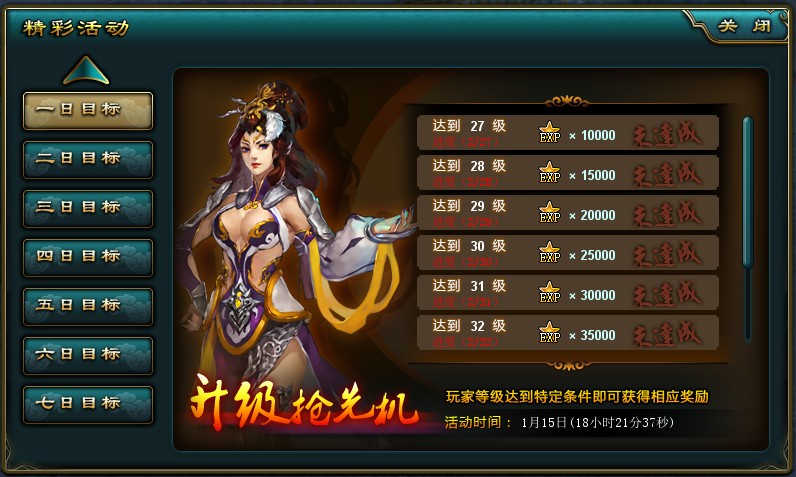 新服新版精彩活动上线—— 七日目标活动(仅1月15日后新服开启)