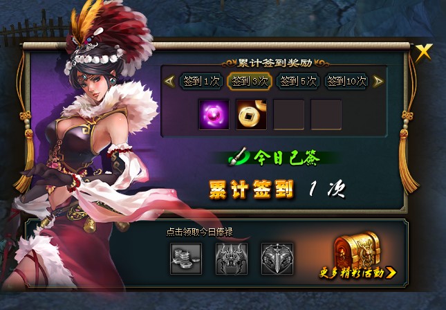 a)玩家签到即可领取每日俸禄和竞技场等日常资源(与原先领俸界面结合)