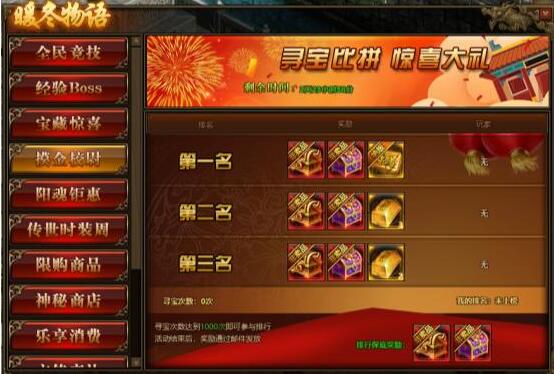 第三名:名列前茅自选宝箱,传世灵器随机宝箱*1,金条(300w)*2;