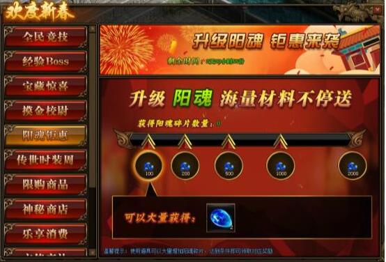 1. 活动期间,玩家获得阳魂碎片数量,达到条件可领取对应阳魂碎片奖励。