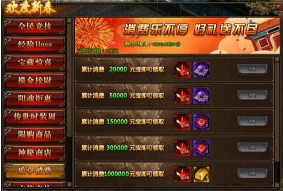 1.活动期间,玩家累计消费满足要求,可以领取境界修为、本职业星石、传世灵戒等相应奖励;
