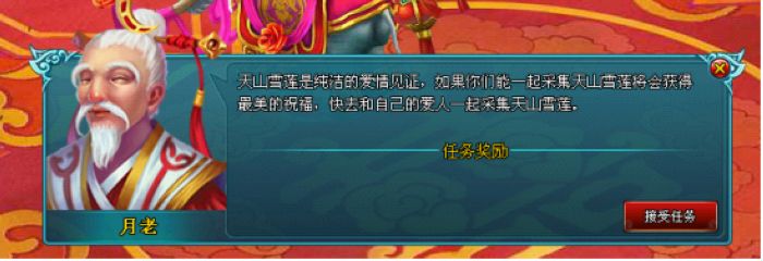 任务类型:采集天山雪莲,击败女娲灵,参加仙道会,温泉双修,采集涅槃丹。