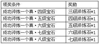 活动期间,玩家每淬炼成功一个指定级别的真·宝石,即可获得系统赠送的好礼一份。