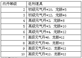 活动规则:活动期间,在内丹刷新系统每消费800元宝即可获得高级元气丹*3奖励!