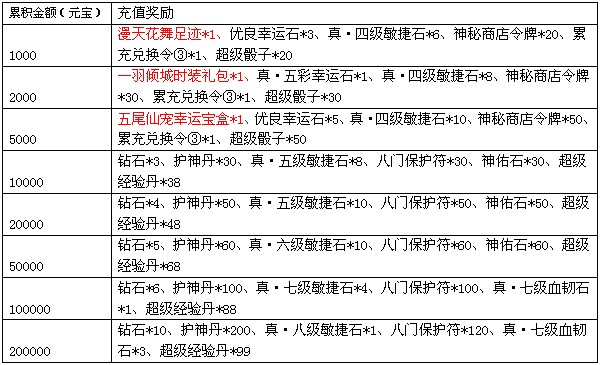 4、累积充值大礼:活动期间,累积充值达到指定额度,还可以获得以下超值丰厚的奖励哦!