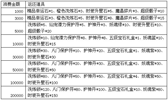 活动规则:活动期间,玩家在除市场外其他全部系统累积消费至指定额度,可获得额外的奖励。
