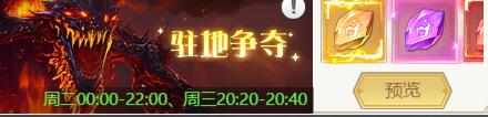 活动玩法:本活动分两个阶段,第一阶段为首领战,首领战开启时间为每周二0:00-周二22:00,第二阶段为争夺战,争夺战开启时间为首领战之后周三20:20-20:40。