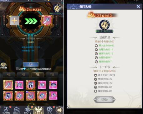 消耗3件低星级装备可以升级为高一级星级装备,升级2-3星装备需要额外消耗装备升星石,4星以上需要额外消耗装备升粉石,装备升星可以获得大量的装备属性加成,5星以上装备会额外获得技能+1属性,不同的装备部分获得的技能不同。