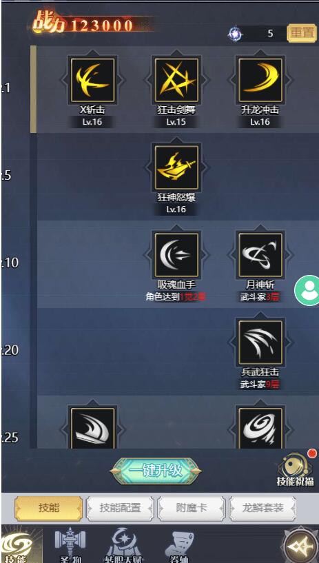 2、角色技能升级,圣物的获取,转职天赋的升级和获得卷轴(有一部分卷轴是通过每天登录游戏获得)