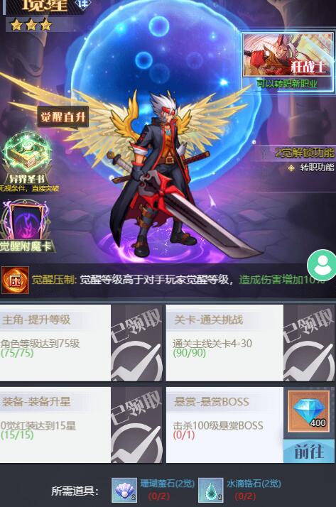 完成四个觉醒任务即可觉醒,完成勇士之路里的任务。
