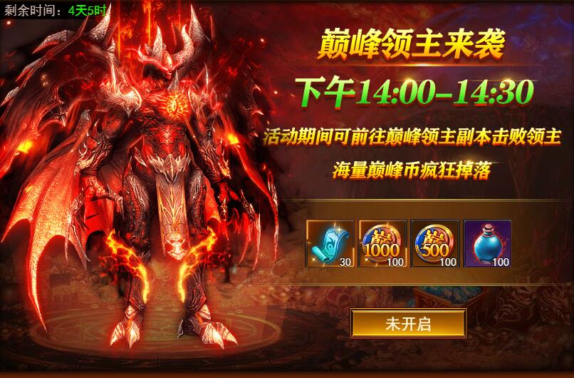 (3)每天活动BOSS14:00-14:30一定要参加,BOSS无归属,只要参加就可以获得更多巅峰币,在比赛服巅峰币就是战力!就是一切!