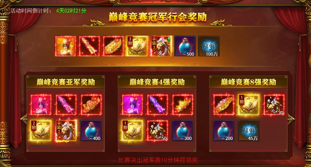 比赛结束10分钟后可以领奖。请务必及时领取奖励。