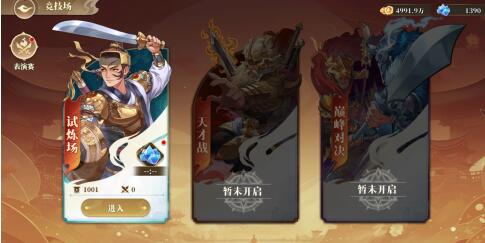 主线关卡达到5-12解锁竞技场,解锁后点击“竞技”按钮,即可进入竞技场界面。当前仅开放“试炼场”模块,进入后可挑战其他玩家提升自己的排名,也可直接挑战天榜中的玩家直接一步登顶。自身排名越高,每日可领取的结算奖励越多。