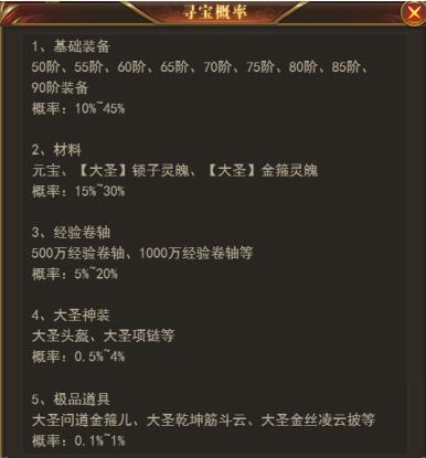 《开天西游》抽奖概率公示