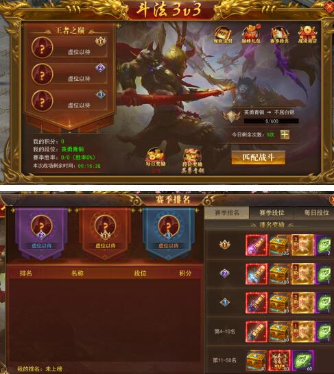 每场比赛可获得段位积分,积分满足即可提升段位,根据段位和排行可获得每日段位奖励,段位赛季奖励,段位赛季排行奖励
