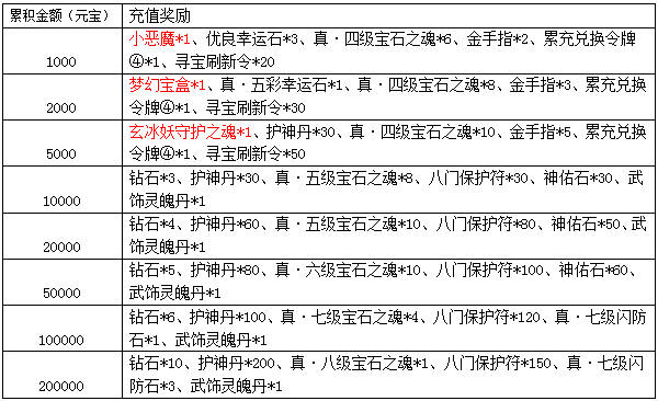 活动规则:活动期间,单笔充值达到指定额度,还可以获得以下超值丰厚的奖励哦!