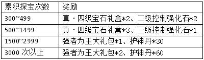 活动规则:活动期间,每天累计寻宝次数达到150次且在寻宝达人榜排行前3名玩家可获得额外系统奖励。