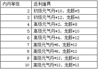 活动规则:活动期间,将橙色品质内丹升级到指定级别,可获得额外系统赠礼。