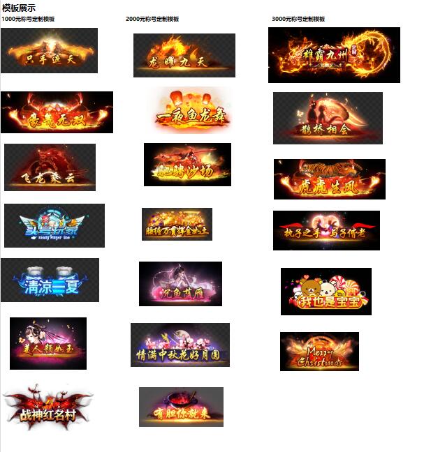 3、单日充值达到3000元(实付),可定制3000元档位专属游戏称号(限定2-4个字)并获得定制礼包;