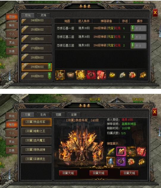 玩家在游戏中,随着不断的成长,可以逐步挑战异兽,并且获得稀有的装备及道具。