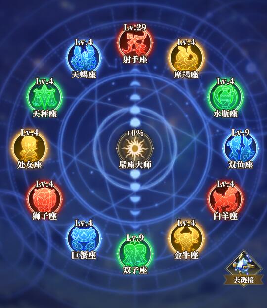 培养优先级与伙伴培养优先级相同,前期可以优先全部星座升至 5 级,激活星座大师,提升属性。