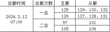 合服时间:3月12日7:00