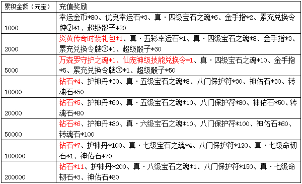 4、累积充值大礼:活动期间,累积充值达到指定额度,还可以获得以下超值丰厚的奖励哦!