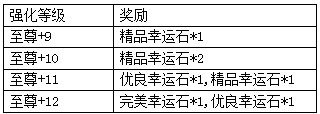 活动规则:活动期间,任意装备至尊强化成功至指定级别,都可获得额外奖励。