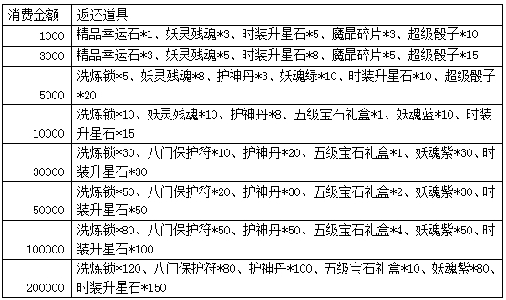 活动规则:活动期间,玩家在除市场外其他全部系统累积消费至指定额度,可获得额外的奖励。