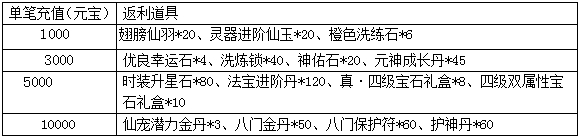 温馨提示:单笔充值奖励可重复领取,不设上限,奖励物品均为绑定,以信函方式发放。