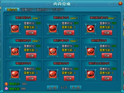概述:神丹问世降三界,众仙重铸觅乾坤!开启神级品质内丹,可通过内丹重铸,或者内丹兑换界面,均可获得神级内丹!