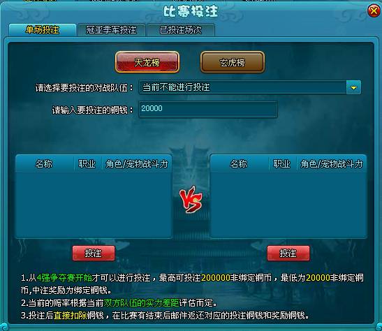 2.武神坛之战,增加下注功能。