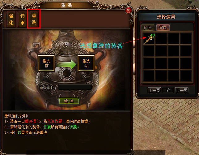 注意事项:装备一旦重洗,将无法恢复,请谨慎使用此功能。