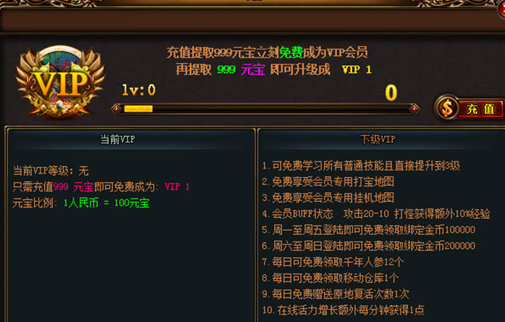 1,玩家可以点击游戏中的“VIP”按钮查看目前的VIP等级以及相关特权