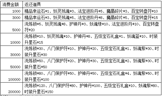 活动规则:活动期间,玩家在除市场外其他全部系统累积消费至指定额度,可获得额外的奖励。