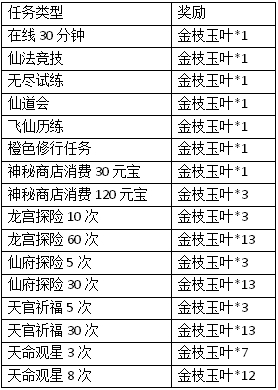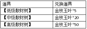 1.活动期间,玩家完成以下指定游戏内容可获得金枝玉叶,不同数量金枝玉叶可兑换不同级别的散财树;