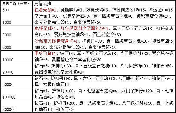 6、累积充值大礼:活动期间,累积充值达到指定额度,还可以获得以下超值丰厚的奖励哦!