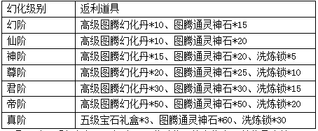 活动规则:活动期间,将图腾幻化到指定级别,可获得额外系统赠礼。