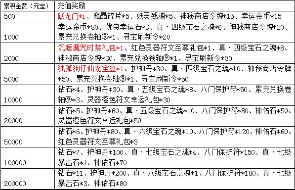 6、累积充值大礼:活动期间,累积充值达到指定额度,还可以获得以下超值丰厚的奖励哦!